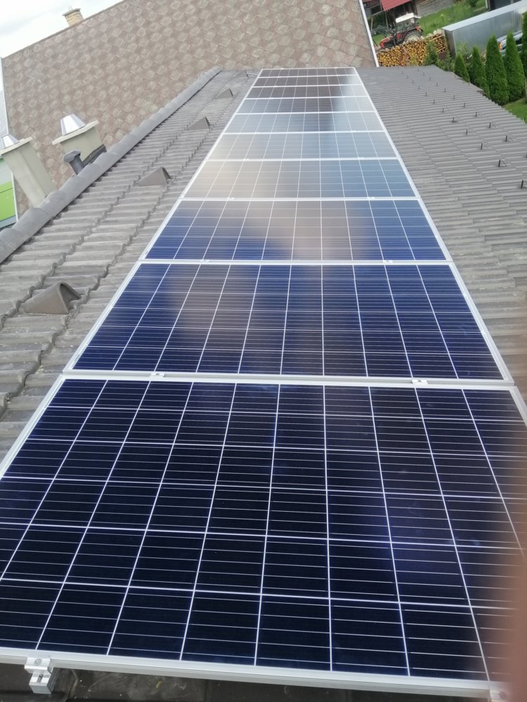 Inštalovaný výkon 2,9kWp. Panely IBC Solar AG 290Wp x 10ks