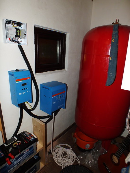 2295 Wp ostrovno-hybridný fotovoltaický systém. Zákazník využíva celoročne prevádzku chaty, kde nebola nikdy elektrická sieť. V chate využíva napájanie ponorného čerpadla, chladničky, HIFI, osvetlenie, vysávač a iné spotrebiče. V prípade nedostatku energie si zapína elektrocentrálu, ktorá bude dodá chýbajúcu energiu a zároveň nabije batérie.