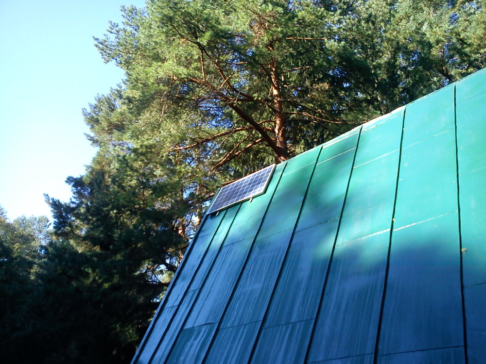 240Wp ostrovný systém nainštalovaný v chatárskej osade mesta Prievidza. Zabezpečuje dodávku el. prúdu pre spotrebiče ako sú alarm, osvetlenie, TV, rádio...